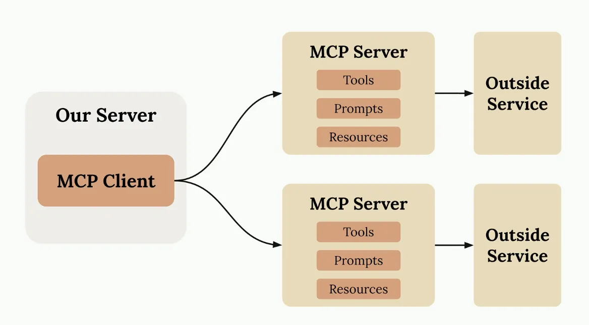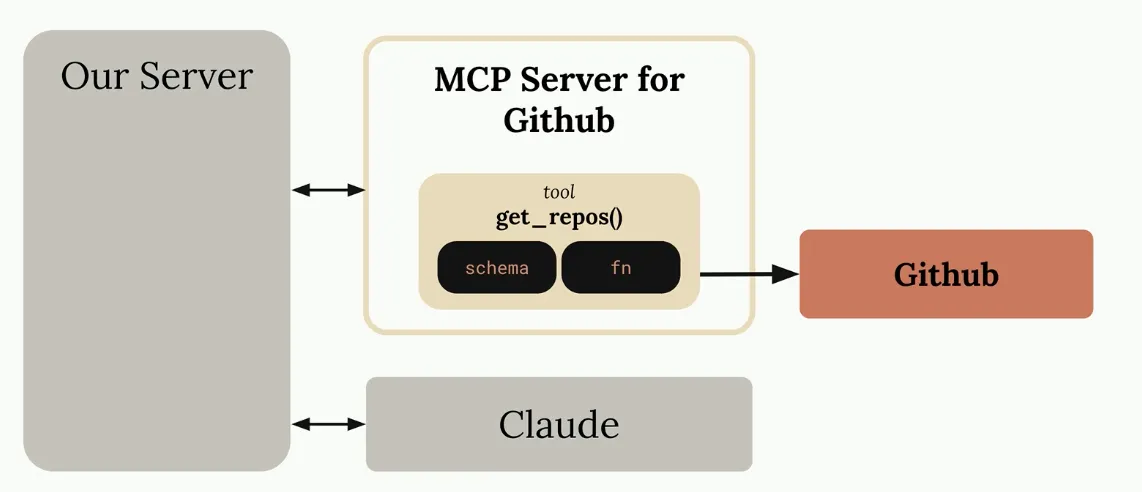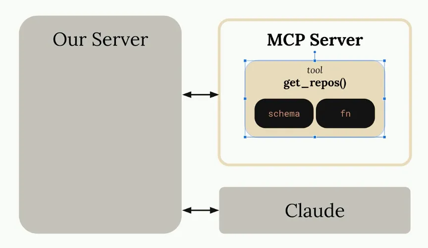 - MCP servers provide tool schemas + functions already defined for you (kinda bigger concept)